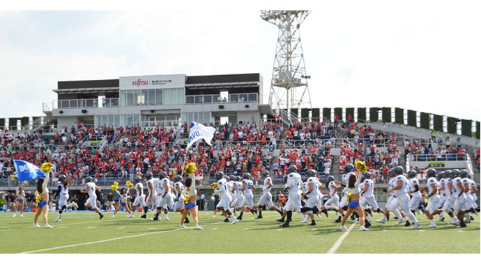 選手の熱い気持ちを表したような快晴で幕を開けた 第2節 富士通フロンティアーズ戦。