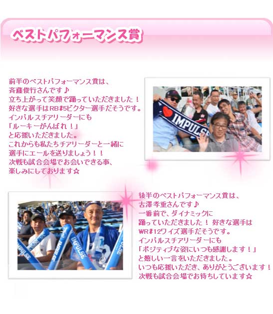 私たちインパルスチアリーダーも、主将のDL#17モトゥ選手の言葉にあったように