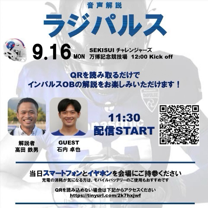お持ちのスマートフォンを使用して、インパルスOBによる試合の音声解説をお楽しみいただけます!
