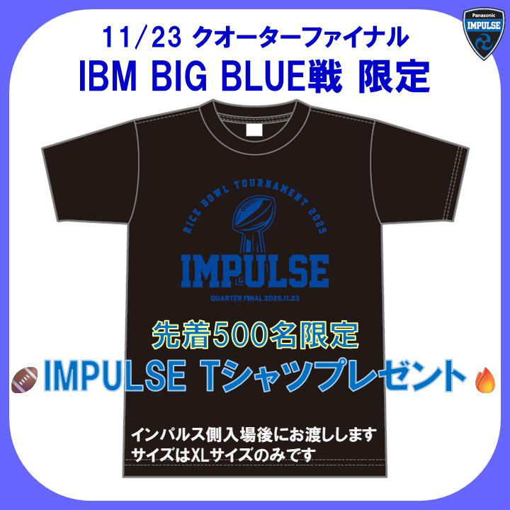 クオーターファイナルより、インパルスオリジナルグッズを試合会場でお買い求めいただけます。