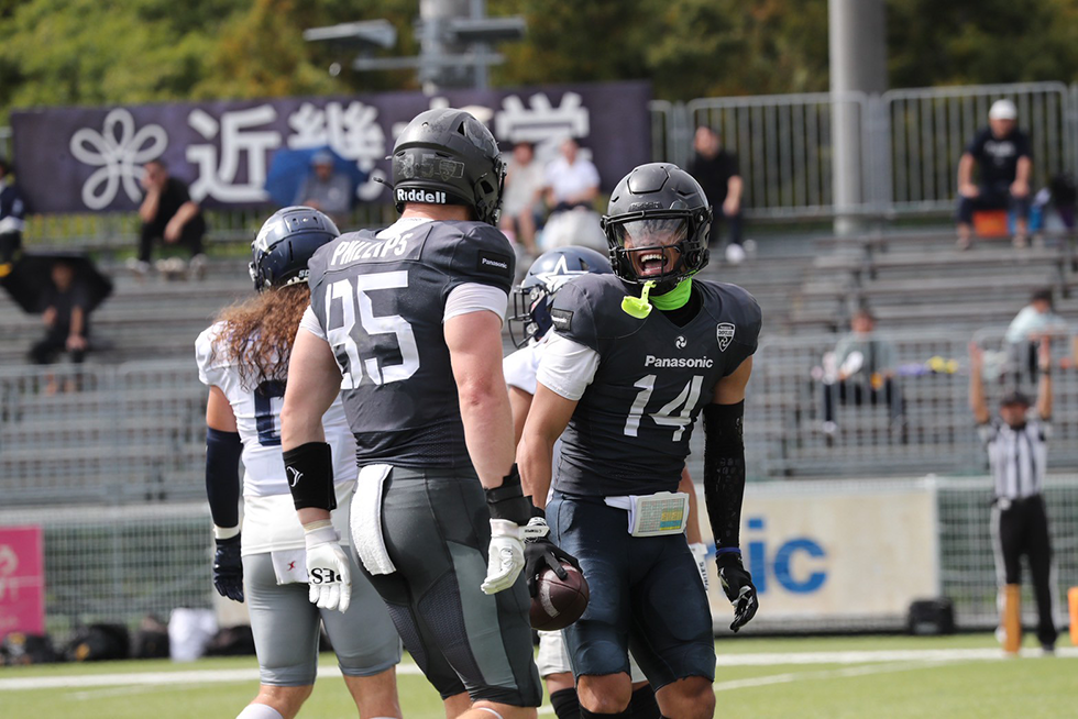 その後にエレコム神戸に1TDを返されたが、次の攻撃機会にもWR#82當間義昭への30ヤードロングパスTDで再びリードを広げた。