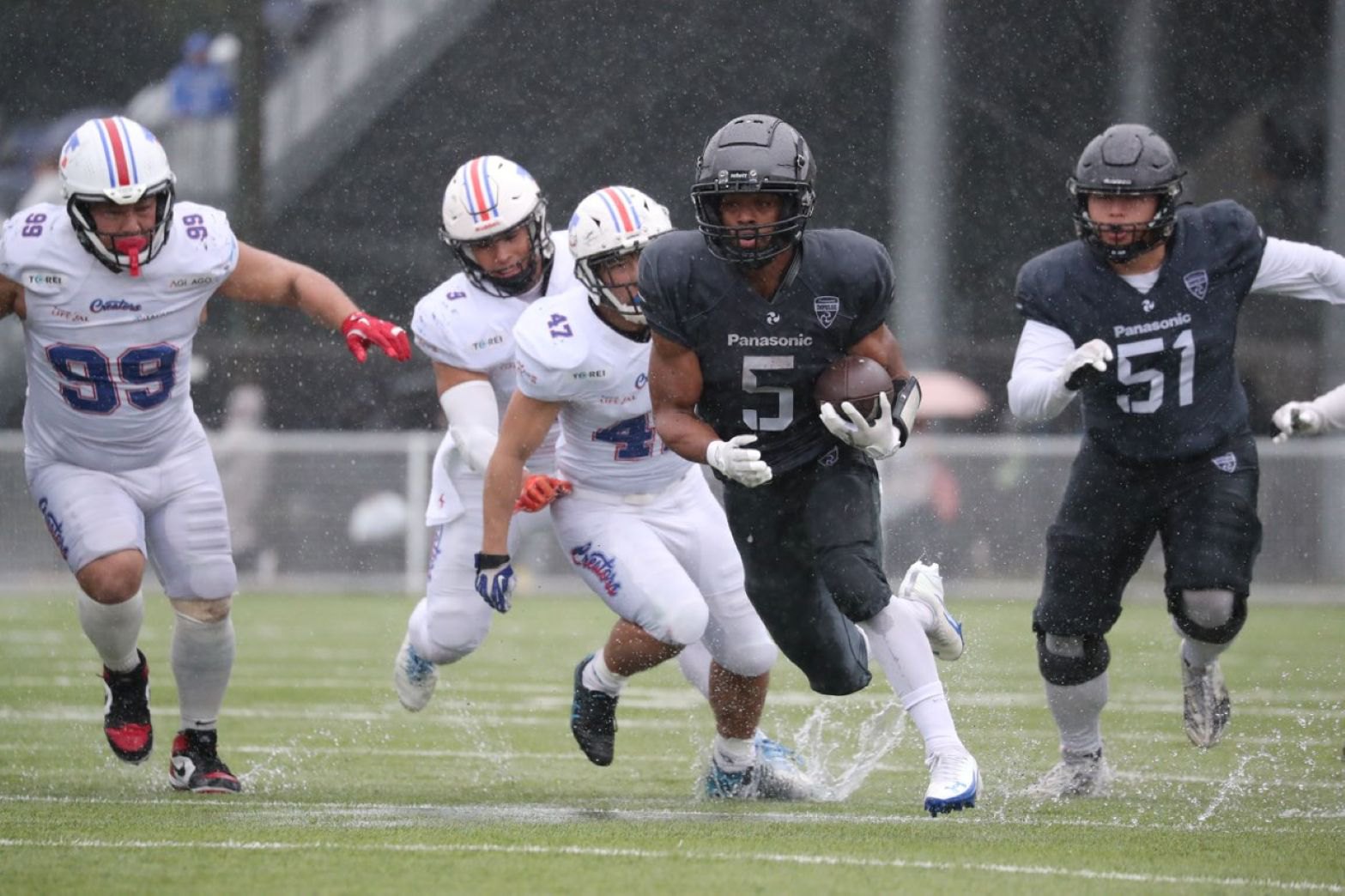 その後もボールハンドリングが安定しない状況が続いたが、WR山下が再びチャンスを作った。パントリターナーに入った山下は、22ヤードの好リターンで敵陣39ヤードからの攻撃機会を創出。このチャンスをRBミッチェルがラン2連発でTDにつなげてリードを広げた。