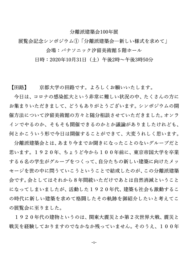 展覧会記念シンポジウム①「分離派建築会―新しい様式を求めて」