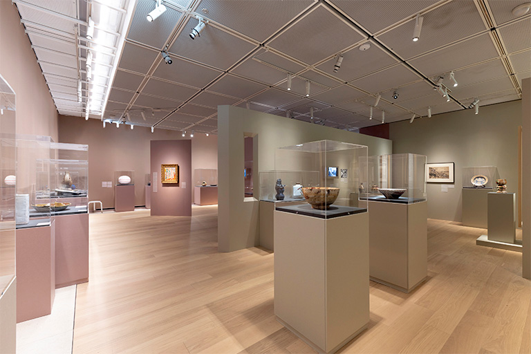 本展の前半部である第1章から第4章では、近現代日本の作家たちの作品を中心に、陶芸における描線、色彩、質感、形態への取り組みに注目しました。