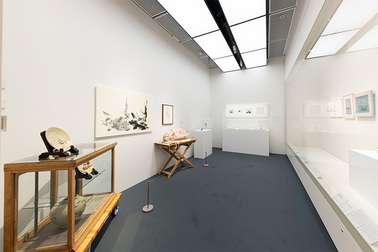 本展の中盤となる第5章では視点を変え、イギリスやデンマークの作家を中心に、陶芸において重要な位置を占めるうつわの表現と、そこに見出される陶芸と絵画をめぐる表現の展開について提起しました。