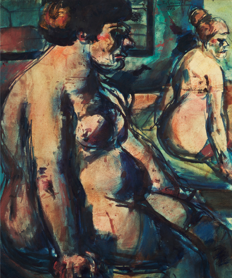 開館以来ルオー作品を継続して収集している当館は、2022年度、初めてルオーの師ギュスターヴ・モローの油彩を収蔵し、コレクションの幅を広げています。また、2024年度には、フォーヴ期のルオーの代表作《二人の娼婦》(裏面:《婦人像》)(1906年)が収蔵作品に加わりました。本展では、これらを含む近年の新収蔵作品を一挙公開いたします。この度、収蔵作品としては初めて出品される《モデル、アトリエの思い出》(1895年/1950年頃)にもご注目ください。