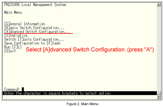 From the Main Menu, select Advanced Switch Configuration. (See Fig.2.)