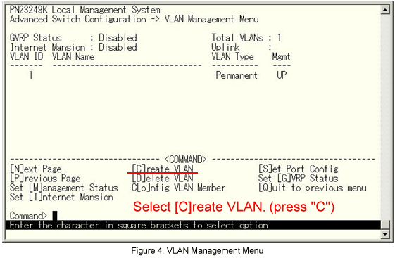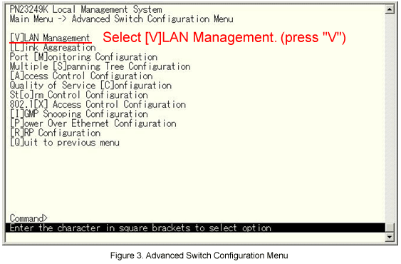 From the Advanced Switch Configuration menu, select [V]LAN Management. (See Fig.3.)