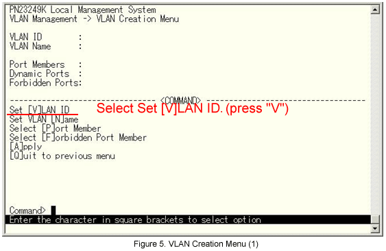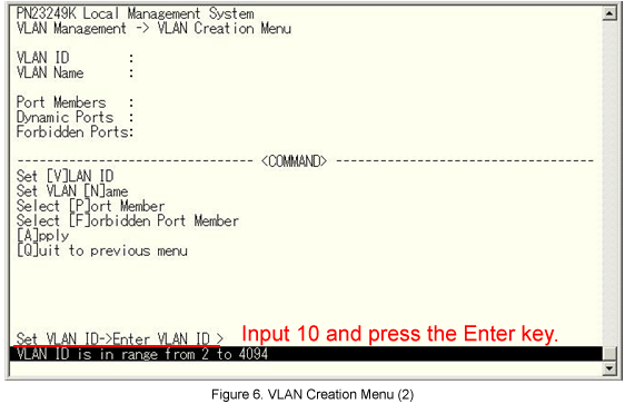 From the VLAN Creation Menu, select Set [V]LAN ID. (See Fig.5.)