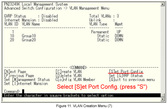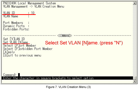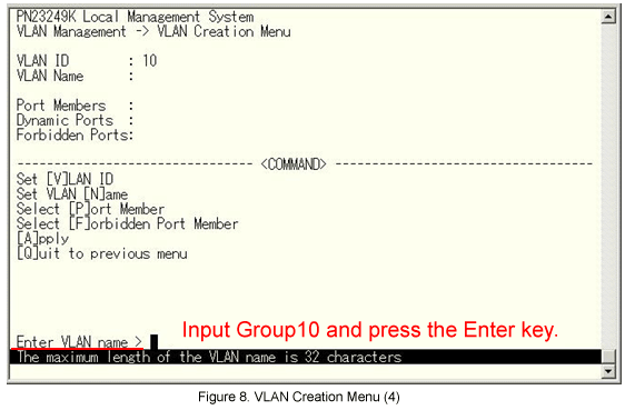 10 is entered in VLAN ID. Next, from the screen shown in Fig.7 select Set VLAN [N]ame.