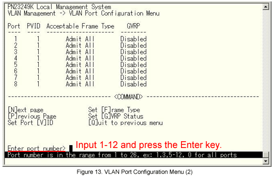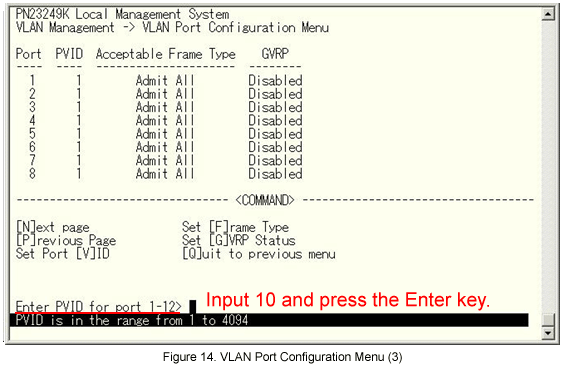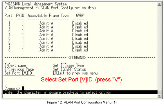From the VLAN Port Configuration menu, select Set Port [V]ID. (See Fig.12.)