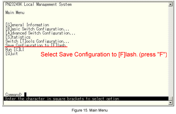 Return to the Main Menu and select Save Configuration to [F]lash. (See Fig.15.)