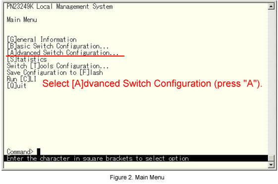 From the Main Menu, select Advanced Switch Configuration. (See Fig.2.)