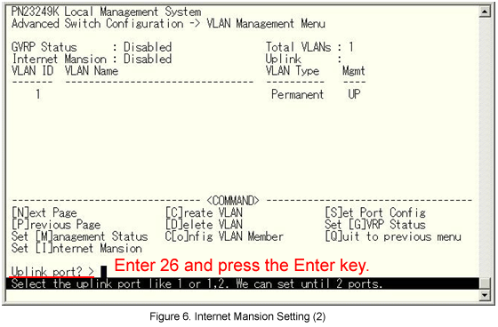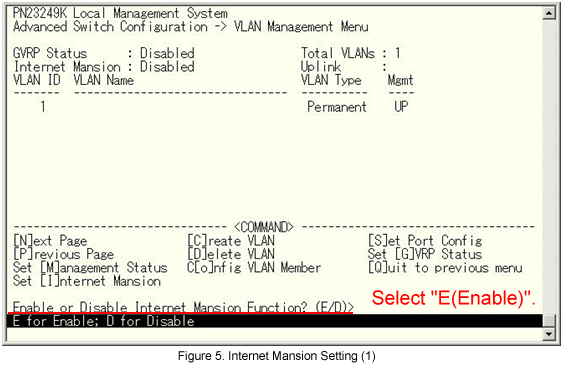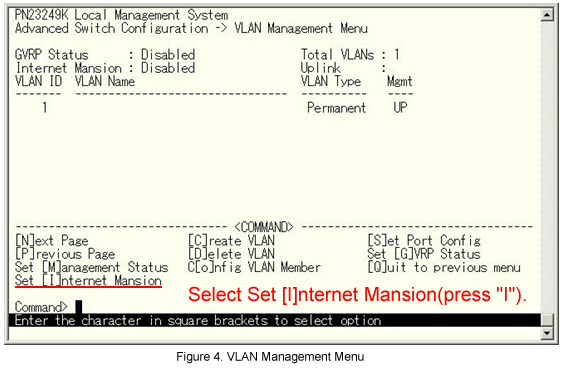 From the VLAN Management menu, select Set [I]nternet Mansion. (See Fig.4.)