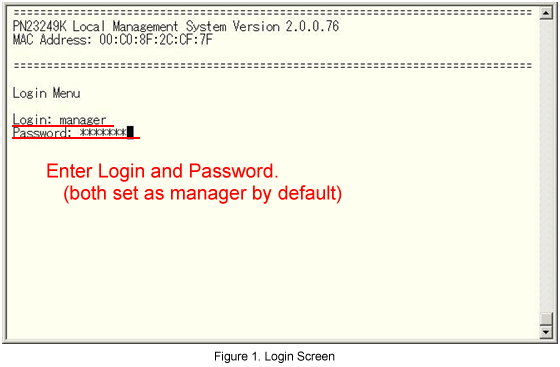 (For the setting screen display method on the console port, refer to the setting example “Method for Connecting to the Ethernet Switch Console Port.”)