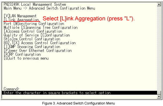 From the Advanced Switch Configuration menu, select [L]ink Aggregation. (See Fig.3.)