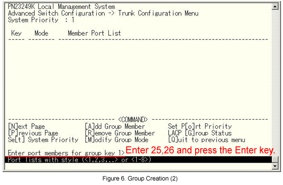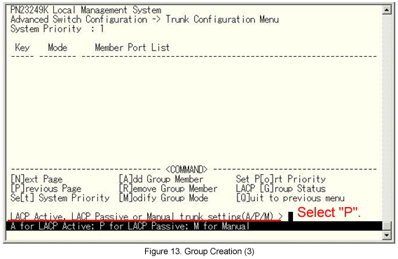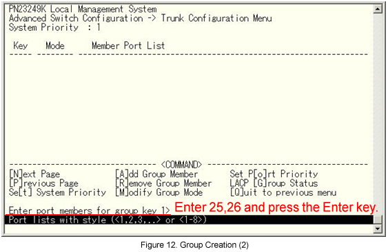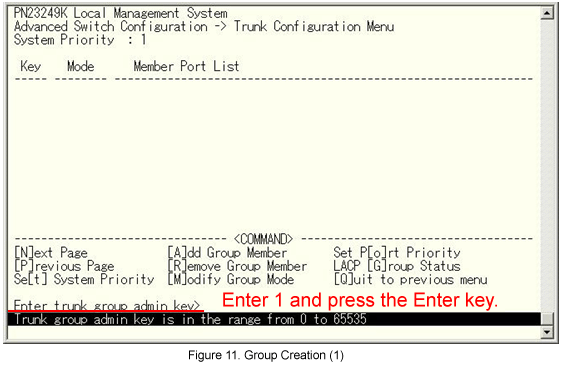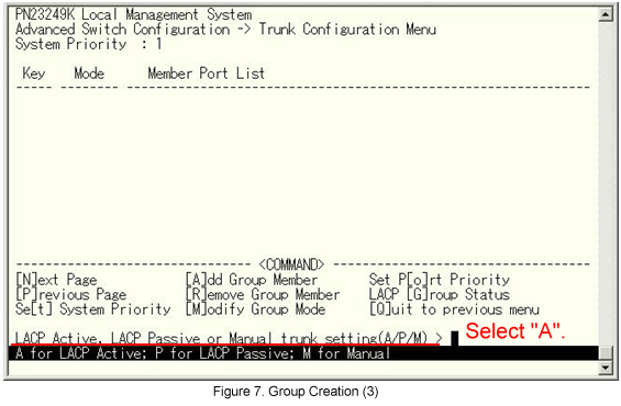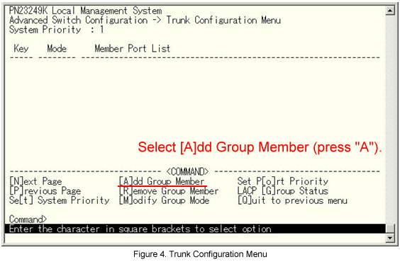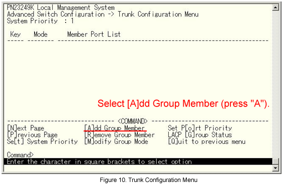 From the Link Aggregation (Trunk Configuration) menu, select [A]dd Group Member. (See Fig.10.)
