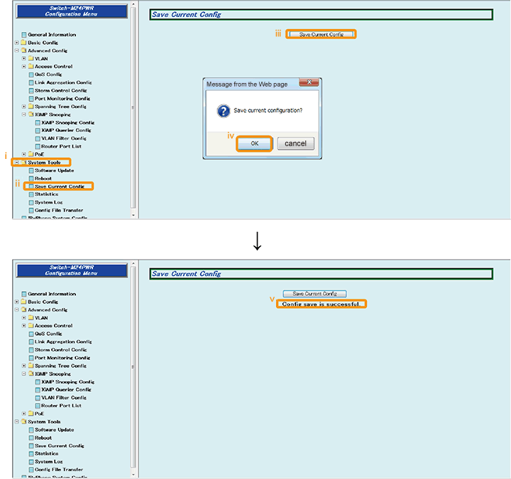 1) Select “System Tools” → ”Save Current Config”(i → ii).