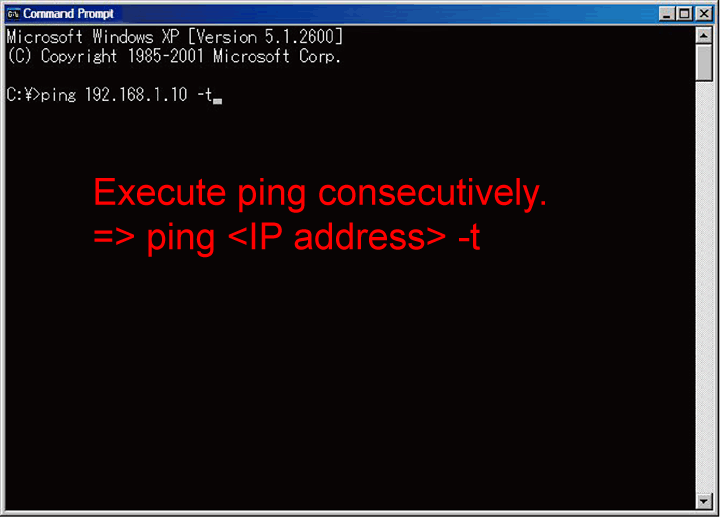 ・Confirm that Ping times out for a several seconds and then starts communicating again.