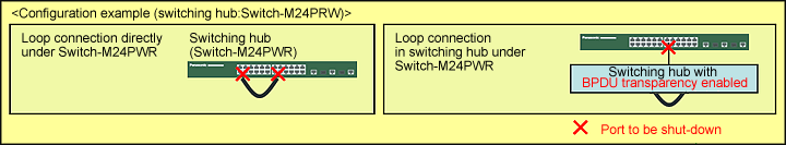 When a spanning tree is enabled, BPDU packets are sent to shut down the port during a loop connection to prevent a broadcast storm occurrence.