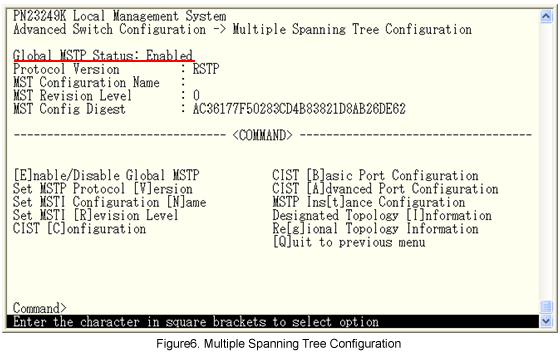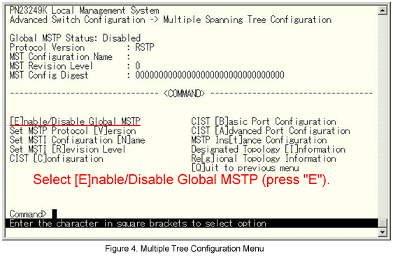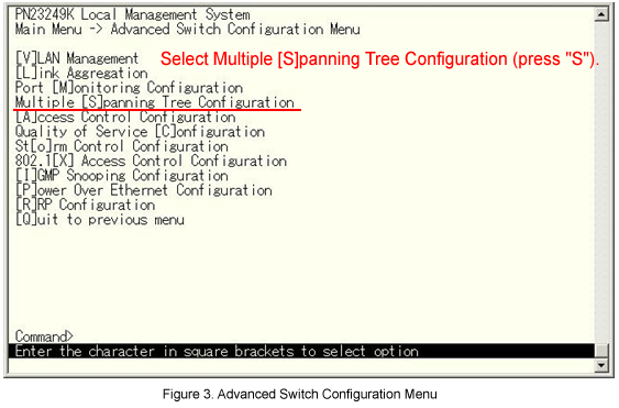From the Advanced Switch Configuration Menu, select Multiple Spanning Tree Configuration. (See Fig.3.)