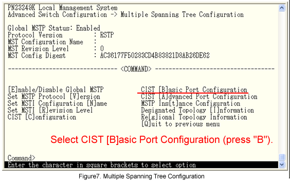 From the Multiple Spanning Tree Configuration Menu, select CIST Basic Port Configuration. (See Fig.7.)