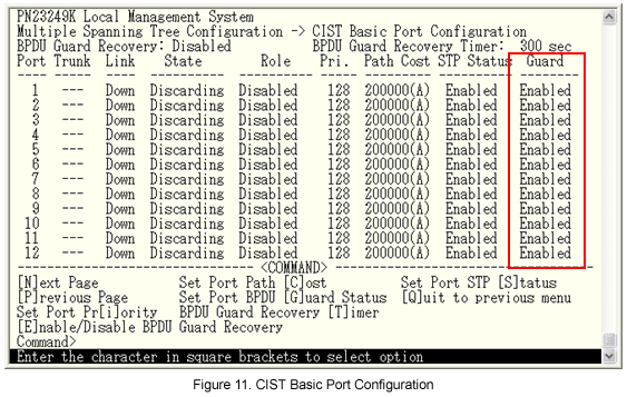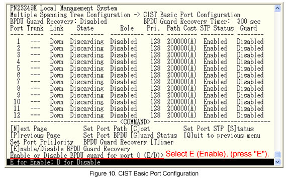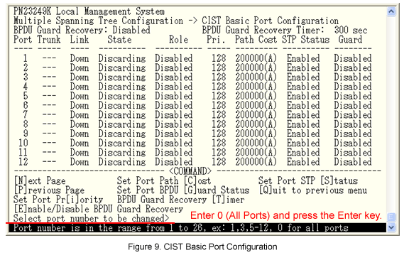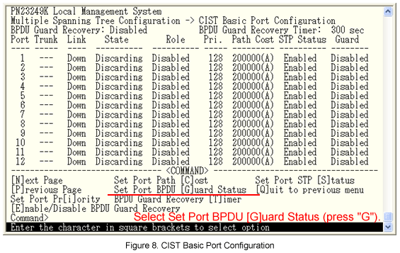 From the CIST Basic Port Configuration, select Set Port BPDU Guard Status. (See Fig.8.)