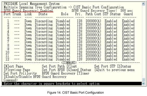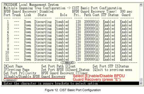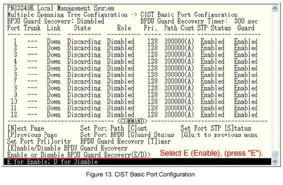 From the CIST Basic Port Configuration, select Enable/Disable BPDU Guard Recovery. (See Fig.12.)