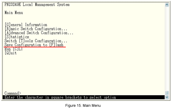 From the Main Menu, select Save Configuration to Flash. (See Fig.15.)