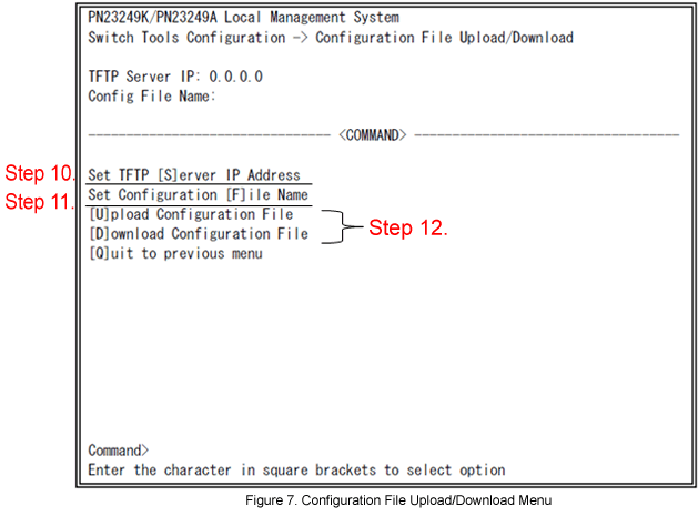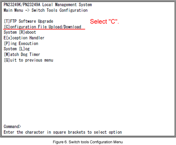 In Switch Tools Configuration Menu, select [C]onfiguration File Upload/Download.