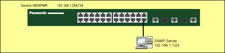 Connect Switch-M24PWR and SNMP server as shown in the configuration diagram, and confirm that Switch-M24PWR can be monitored from the SNMP server and trap is transmitted to the SNMP server when a port link down occurs on Switch-M24PWR.