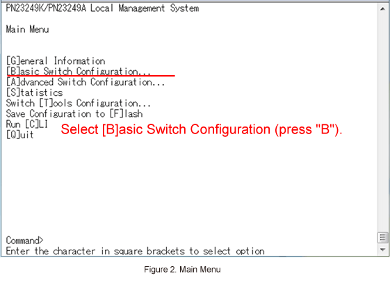 In Main Menu, select [B]asic Switch Configuration. (Refer to Figure 2)