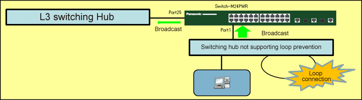 For switches, set storm control, suppress the frames occurred during broadcast or multicast storm, and restrict the number of frames transferred to the upper level L3 Ethernet switch.