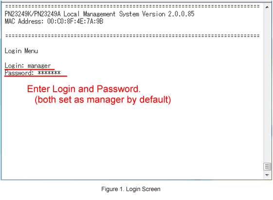 On the login screen, enter Login and Password (both set as manager by default), and login to the setting screen. (Refer to Figure 1)
