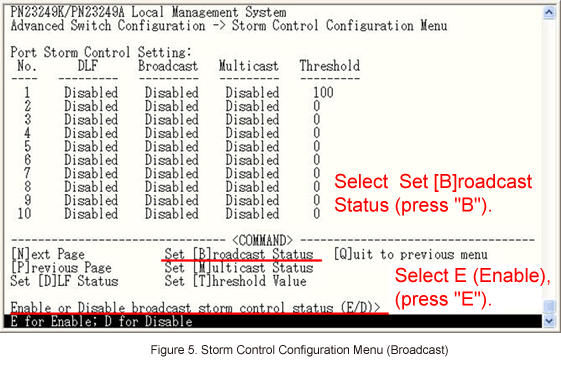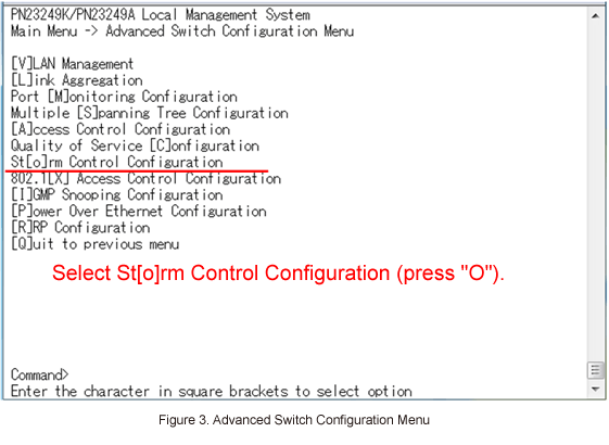 In Advanced Switch Configuration Menu, select St[o]rm Control Configuration. (Refer to Figure 3)