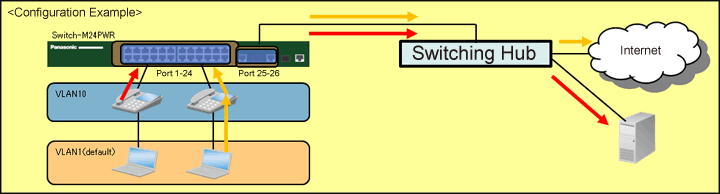 This setting example explains the procedure of VLAN (data + voice) setting for switches.