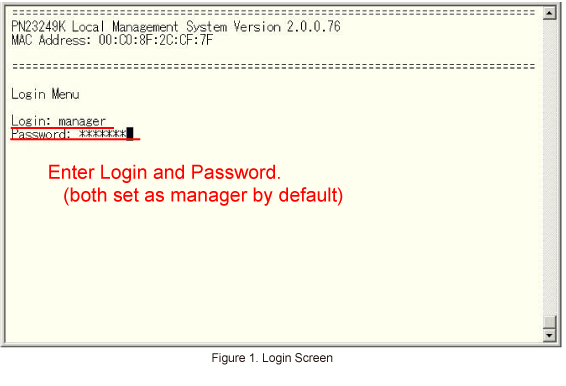 On the login screen, enter Login and Password (both set as manager by default), and login to the setting screen. (Refer to Figure 1)