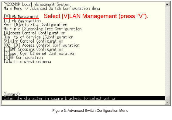 In Advanced Switch Configuration, select [V]LAN Management. (Refer to Figure 3)