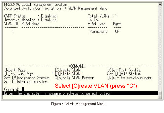 In VLAN Management Menu, select [C]reate VLAN. (Refer to Figure 4)