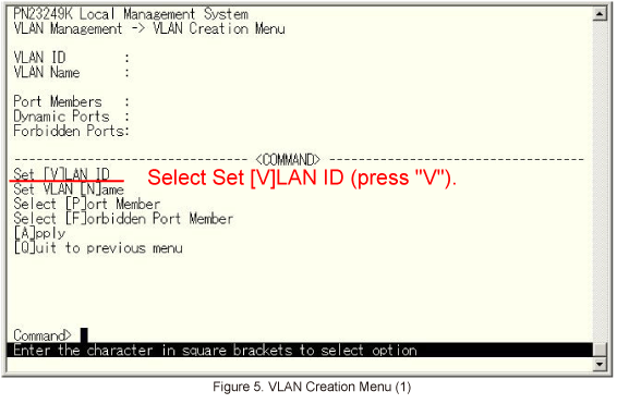 In VLAN Creation Menu, select Set [V]LAN ID. (Refer to Figure 5)