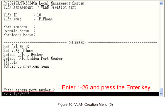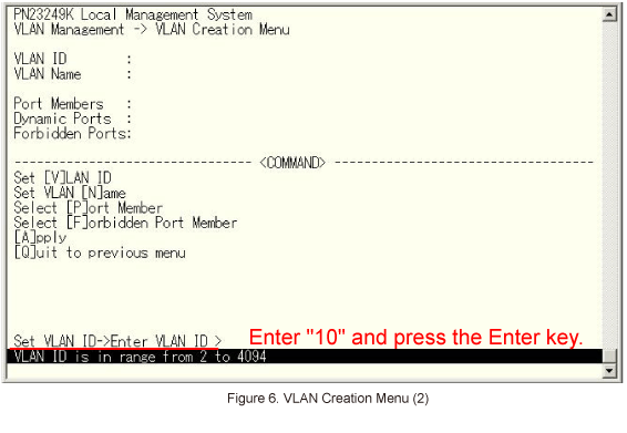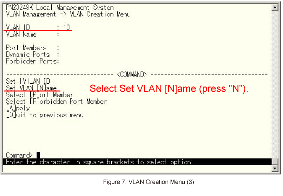 10 is entered as the VLAN ID.Then, select Set VLAN [N]ame on the screen shown in Figure 7.