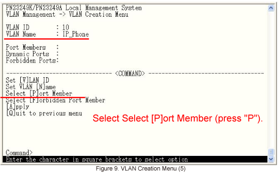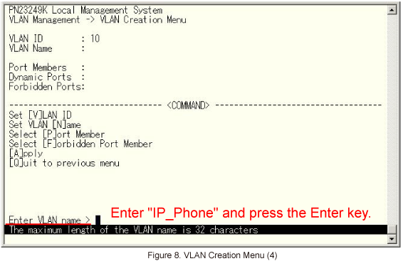 IP_Phone is entered as the VLAN Name.Then, select Select [P]ort Member on the screen shown in Figure 9.