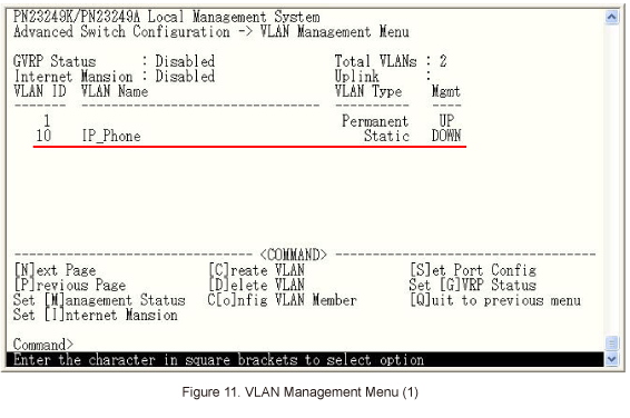 Confirm that VLAN10 (VLAN ID=10, VLAN Name=IP_Phone) is created as shown in Figure 11.