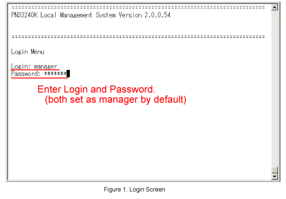 On the login screen, enter Login and Password (both set as manager by default), and login to the setting screen. (Refer to Figure 1)