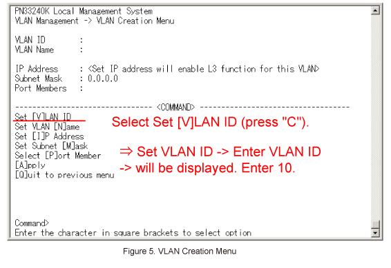 In VLAN Creation Menu, select Set [V]LAN ID. (Refer to Figure 5)
