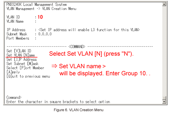 Then, in VLAN Creation Menu, select Set VLAN [N]ame. (Refer to Figure 6)