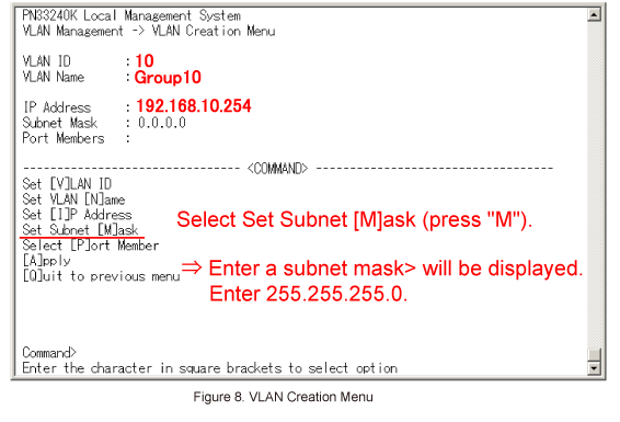 Then, in VLAN Creation Menu, select Set Subnet [M]ask. (Refer to Figure 8)
