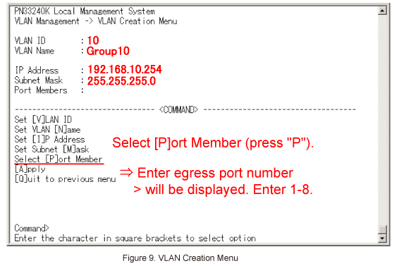 Then, in VLAN Creation Menu, select Select [P]ort Member. (Refer to Figure 9)