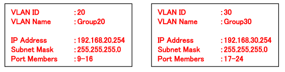 Follow Steps 5 to 11 to configure VLAN ID:20 and VLAN ID:30.