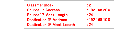 Similarly, enter 2 for Classifier Index and set the classifier for communication from 192.168.20.0 to 192.168.10.0.